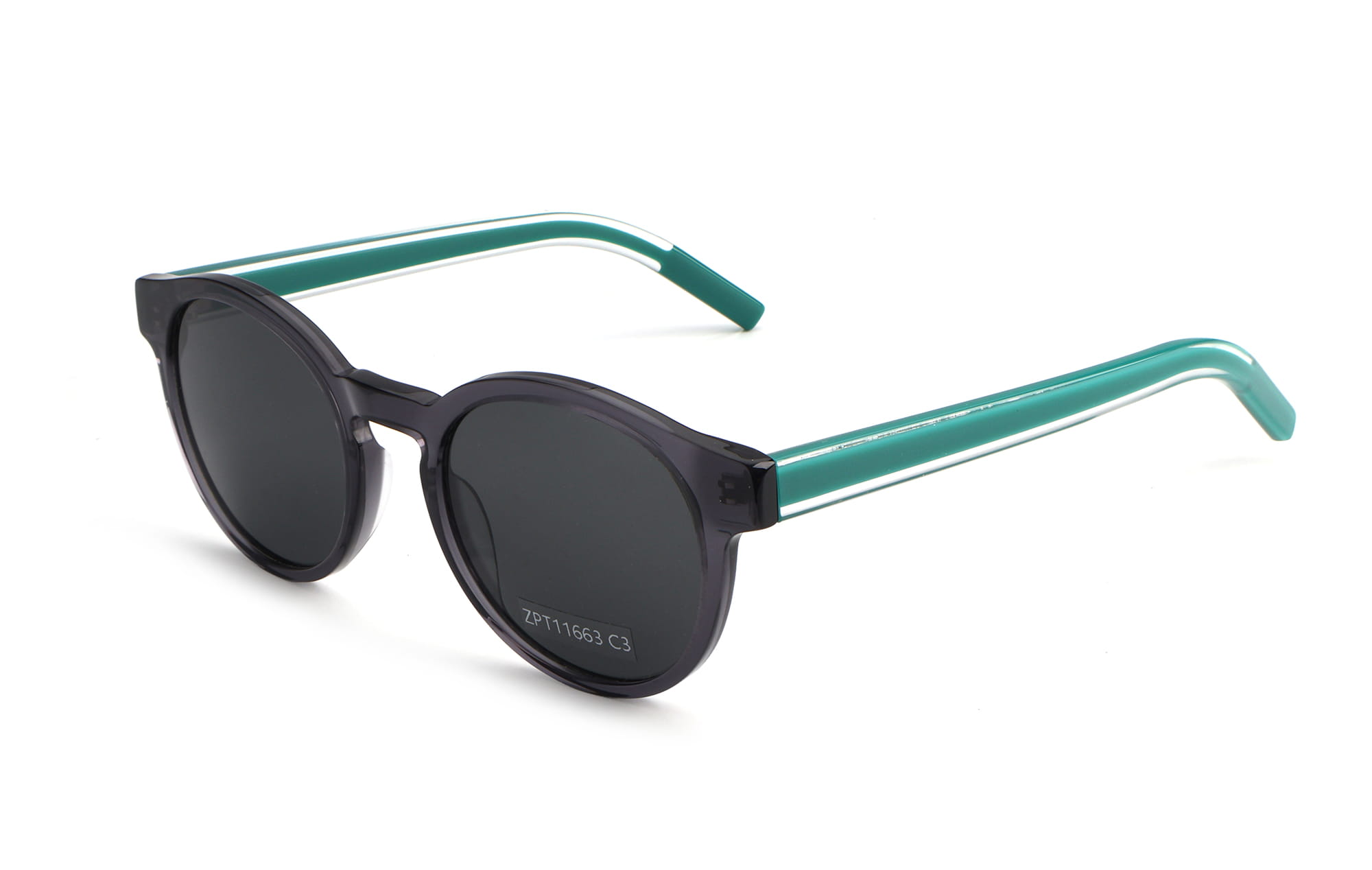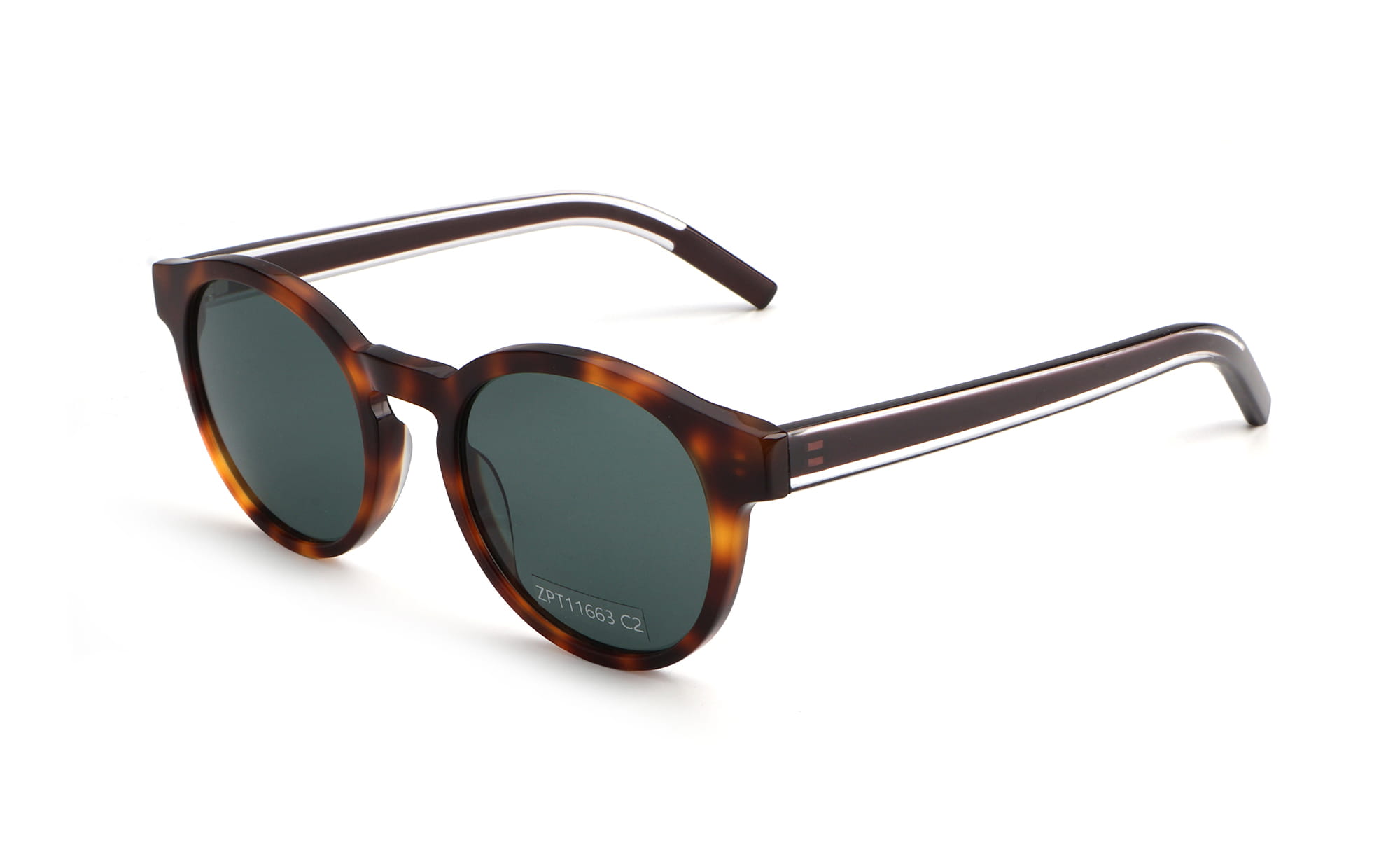 Embrace a timeless, vintage-inspired look with the ZPT11663 from Zhantai Glasses. These polarized sunglasses feature a perfectly crafted round frame style in a rich tortoise acetate, offering a warm and scholarly aesthetic that never goes out of fashion. The classic patterned frame is paired with high-performance dark green lenses, providing natural color perception and 100% UV400 protection. The design is refined with clear acetate layers on the inner temples, revealing the sturdy metal core for a sophisticated, high-end finish. Lightweight and durable, these tortoise sunglasses are designed with a comfortable bridge and smooth hinges for all-day wear. As a professional manufacturer, we offer full OEM & ODM services, allowing you to customize these round fashion glasses to fit your brand’s unique identity.