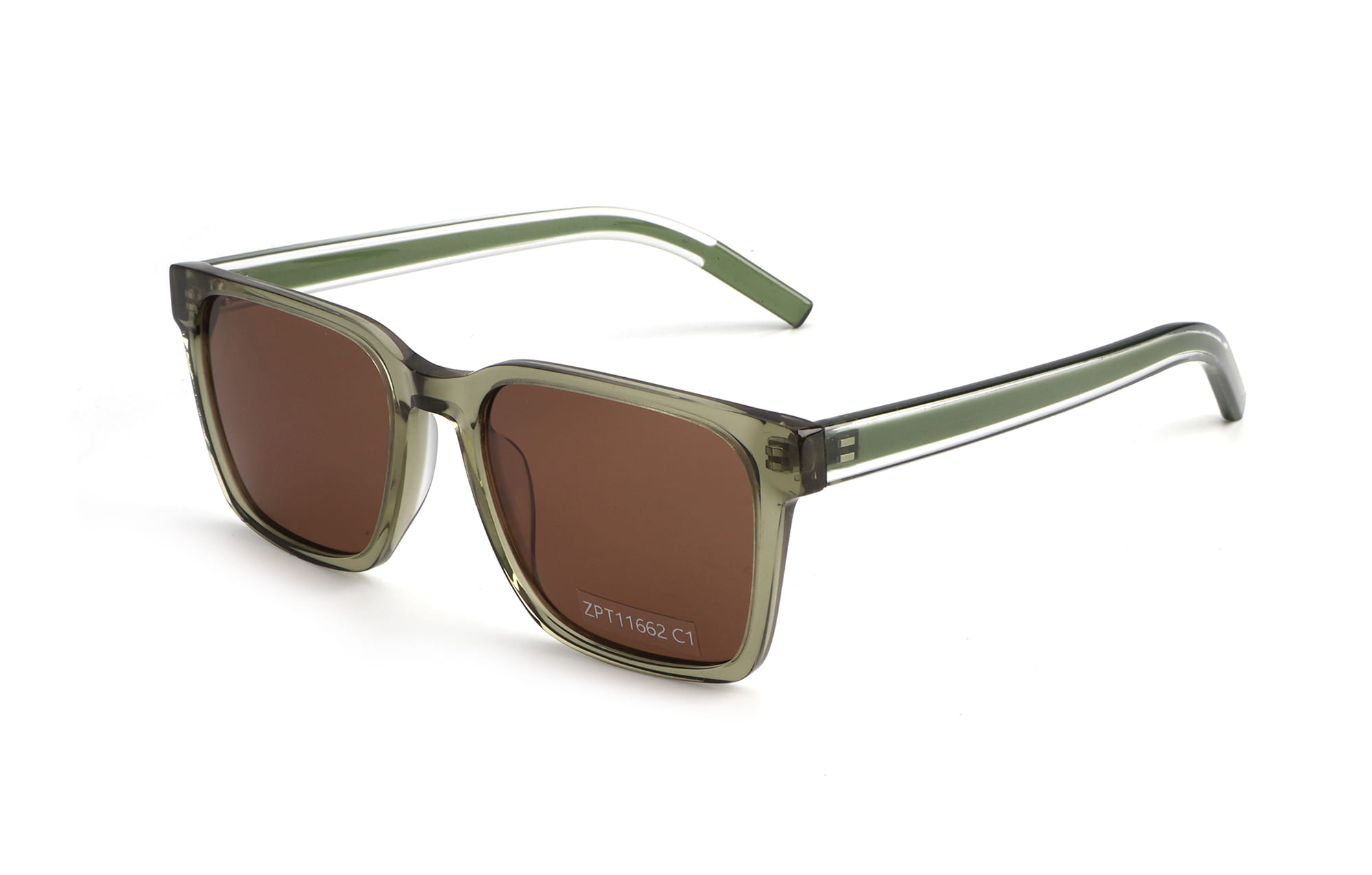 Elevate your collection with the ZPT11662 from Zhantai Glasses, a perfect blend of modern transparency and classic style. These polarized sunglasses feature a contemporary square shape crafted from high-quality transparent green acetate, offering a fresh and crystal-clear aesthetic. The clear green frames are paired with premium brown lenses that provide exceptional contrast and 100% UV400 protection, ideal for diverse light conditions. Designed for all-day comfort, the frame includes streamlined temples with a visible core wire and reinforced hinges for maximum durability. Whether for urban fashion or outdoor lifestyle, these brown lens sunglasses offer a sophisticated, high-end look. As a leading manufacturer, we provide full OEM & ODM services to customize these transparent eyewear pieces to your brand’s specifications.