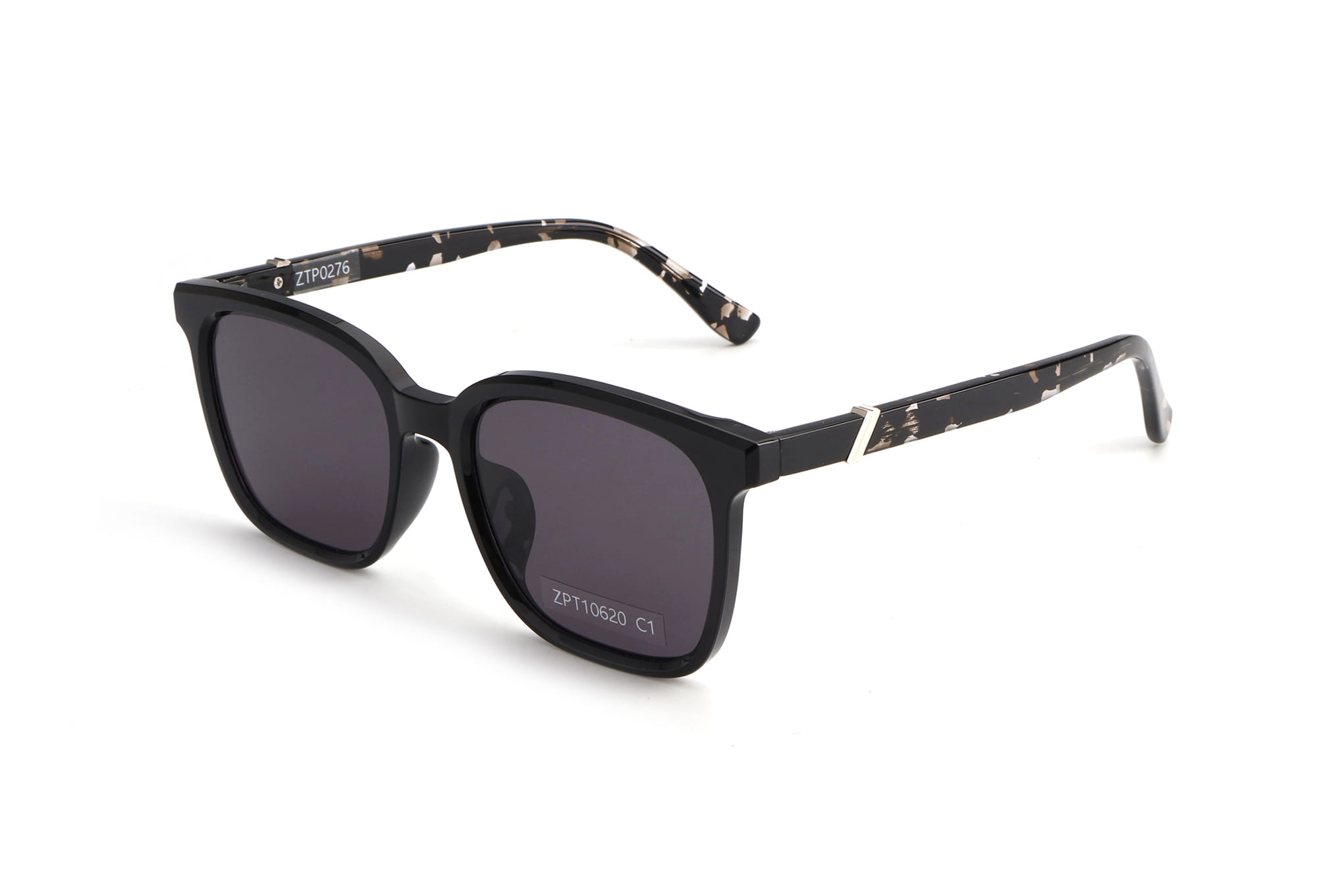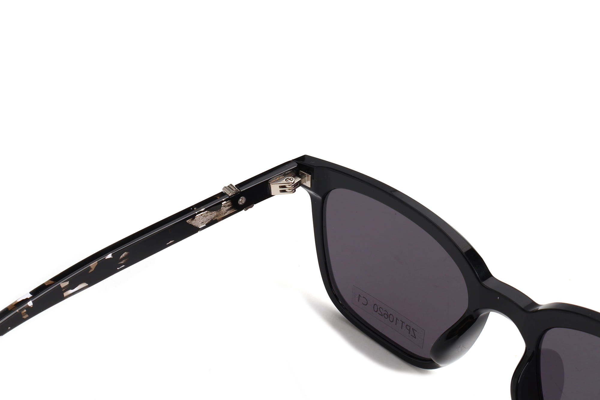 Make a sophisticated style statement with the ZPT10620 from Zhantai Glasses. These black sunglasses feature a timeless square crafted from high-quality polished acetate, offering a bold and versatile look for any occasion. The design is elevated by elegant tortoiseshell patterned temples, connected by a sleek silver metal hinge detail for a premium finish. Equipped with high-definition polarized lenses, these sunglasses provide superior glare reduction and full UV protection, ensuring visual clarity in bright conditions. Designed for both men and women, this unisex square eyewear combines classic aesthetics with modern durability. Whether for daily fashion or outdoor activities, these black sunglasses are the perfect addition to any premium optical collection.
